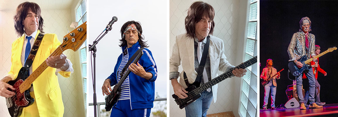 Fast forward over 30 years, after making my way to Los Angeles, playing in a few cover and many of my own original bands, I returned to rock tributes, first for over 3 years as John Entwistle, and now as John Paul Jones. A great musician and producer/arranger, Jones' bass, keys and mandolin playing in Zeppelin was to me the cerebral core of the band, holding down the fort for Bonham, while staying out of Jimmy Page's way. His playing served the music first and was never deliberately flashy. He laid a powerful foundation (as bassist) and expanded the textures (as keyboardist and mandolin player) on their recordings and on the stage. This is also not just about playing the music. It's about using whatever skills and passions I can bring to the table, including making THINGS, including instruments, costumes and (the most magical thing of all) live music. It's performance art.