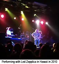 Performing with Zepplica is very different from performing with Heartbreaker - Heartbreaker is very rehearsed, and focuses on the radio hits, with only some "live" versions of solos and arangements. Zepplica, much like the real Led Zeppelin, goes for it with little reahearsal (none with me to this date), and really goes for the live vibe and extended live arrangements. It requires a bit more homework on my part, but I enjoy the challenge of "flying without a net", playing many songs with them for the first time EVER. I look forward to future opportunities to play with them as a fill in JPJ, and hope to continue to please both the band and their audiences when I do.