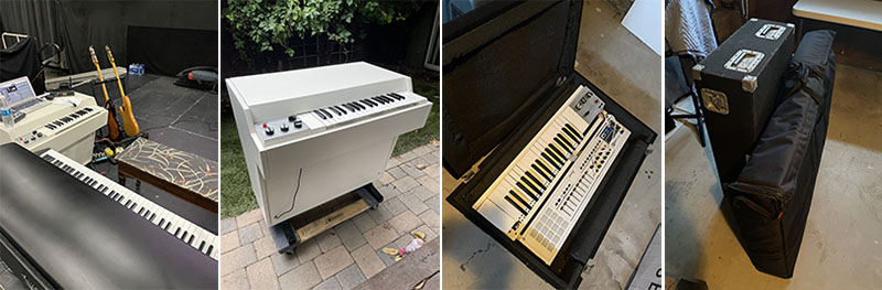 I continue with my goal of building and performing with the most accurate-looking JPJ rig, which includes not only the basses, mandolin and bass amps, but the vintage keyboards. Yes, it's all theatre, and that means it's ATLEAST as much about how it LOOKS as how it sounds (otherwise the paying audience can just stay home and listen to actual Zeppelin recordings), so I believe the accuracy of the left side of the Zeppelin stage is very important from the audience perspective. My keyboard rig (all MIDi controllers in vintage-type shells when possible) now always includes three keyboards: a Rhodes piano, a Mellotron and a Clavinet, as seen in Zeppelin's THE SONG REMAINS THE SAME film from their 1973 US tour (JPJ's rig changes from tour to tour based on instrument availability and song list). I have the full correct-looking rig in the No Quarter trailer for all of their shows where the band provide backline; when flying in, I can still bring my dissasemblable Pellotron #2 and a fold-up white 61-key controller for the Clavinet and other keyboard parts, and the productions provide a weighted 88-key controller for the Rhodes parts. With Zeppelin Live I have another full Three-keyboard rig with my latest/greatest Faux Rhodes, another Clavinet shell with a 61-key controller, and the same Pellotron #2, all fitting (somehow) in my non-van.